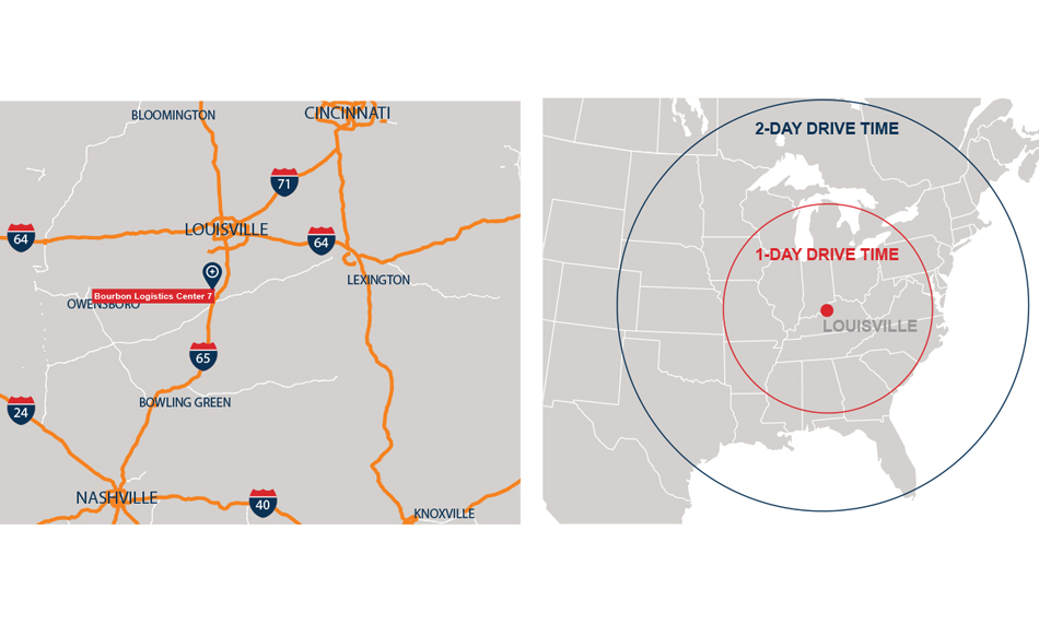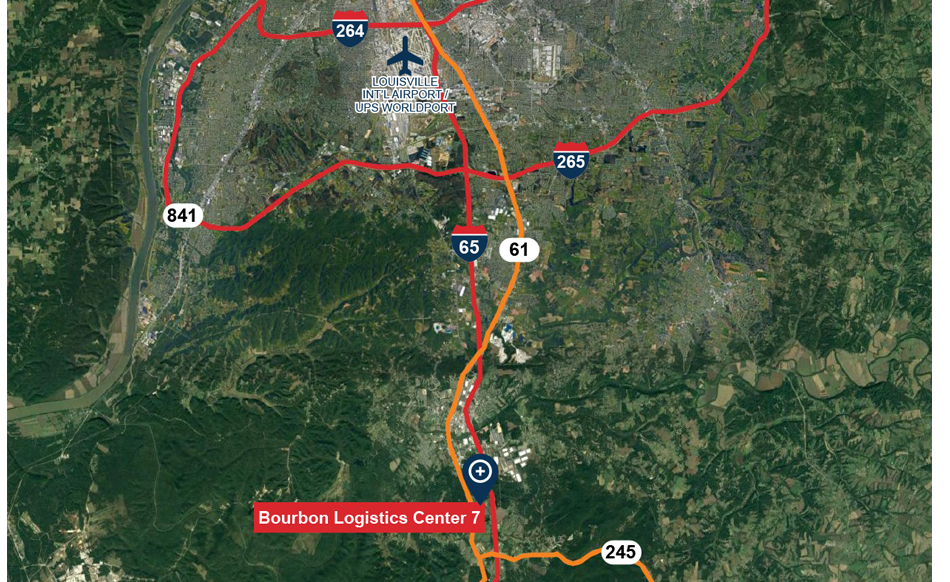 Bourbon Logistics Center 7 is positioned one-half mile from I-65 at Ohm Drive in Shepherdsville, Kentucky. The location provides superior access to multiple markets. UPS Worldport is 15 miles from the site, providing strategic logistics opportunities to the end-user.